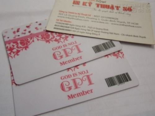 In thẻ nhựa làm thẻ thành viên, thẻ nhựa có mã vạch barcode thuận tiện quét thẻ được công ty in thẻ nhựa In Kỹ Thuật Số thực hiện cho khách hàng