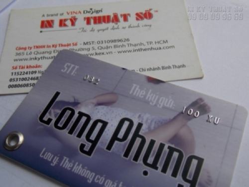 In thẻ nhựa làm thẻ ký gửi, thẻ nhựa được công ty in thẻ nhựa gia công cẩn thận với dập nổi, bấm khoen lỗ xỏ dây, móc khóa