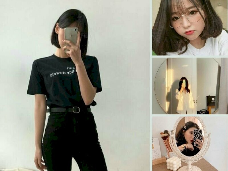 Tổng hợp hình ảnh gái xinh tóc ngang vai 2k7 đeo kính, che mặt ngầu, chụp trước gương, cute dễ thương