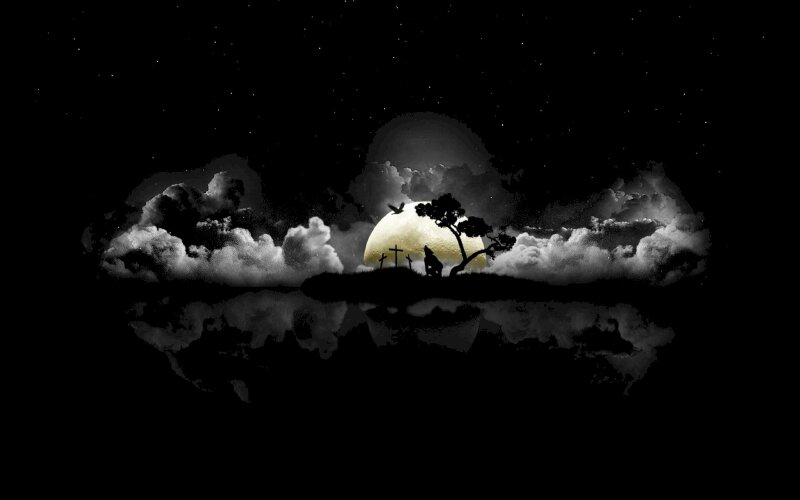 Ảnh đại diện buồn màu đen với hình ảnh ngôi mộ dưới ánh trăng