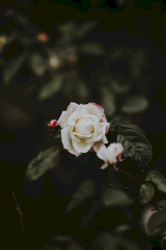 Ảnh hoa hồng trắng buồn nền đen mờ