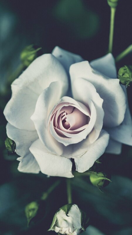 Ảnh hoa hồng trắng nở khi chụp cận mặt hoa phủ màu buồn