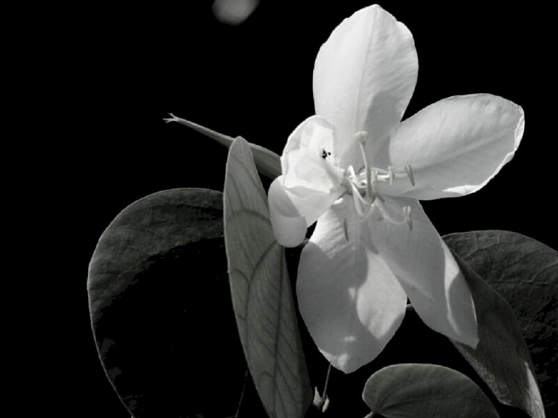 Hình ảnh hoa ban trắng nền đen, nở cuối xuống u buồn