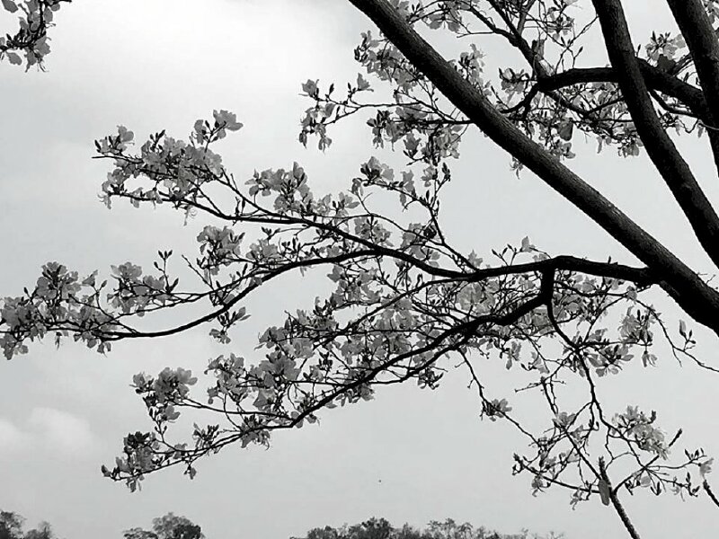 Hình ảnh hoa ban trắng phủ màu trắng đen