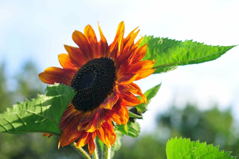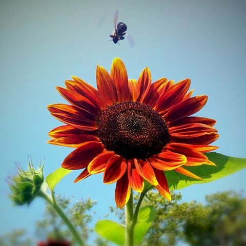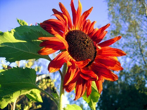Hình ảnh hoa hướng dương đỏ vươn mình đón ánh nắng mặt trời