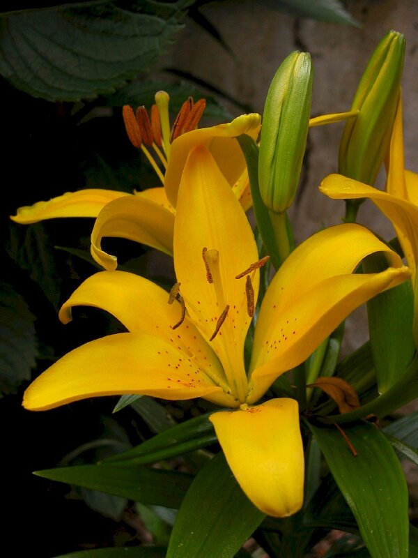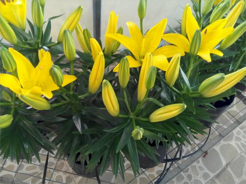 Hình ảnh hoa ly vàng trồng chậu trang trí sân nhà