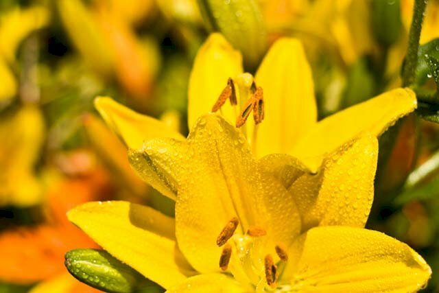 Hình ảnh hoa ly vàng với nhụy cam tô điểm cho bông hoa thêm nhiều màu sắc