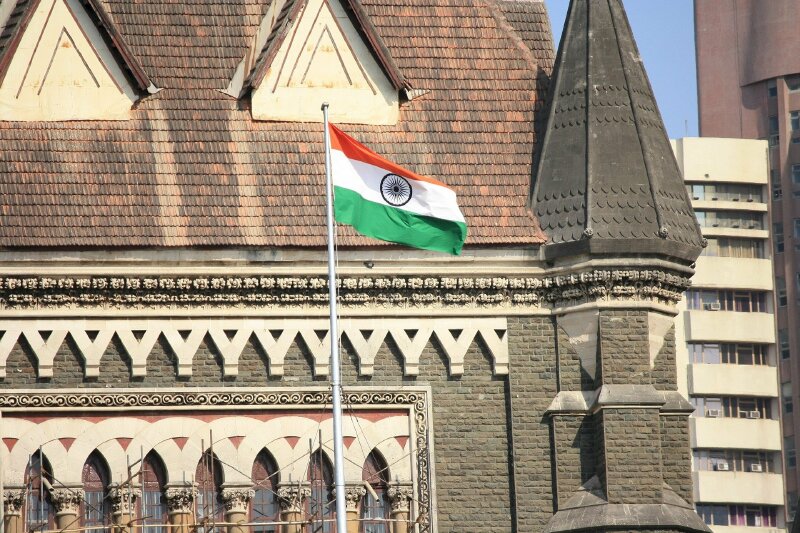 Hình ảnh quốc kỳ Ấn Độ đang tung bay trước một tòa nhà
