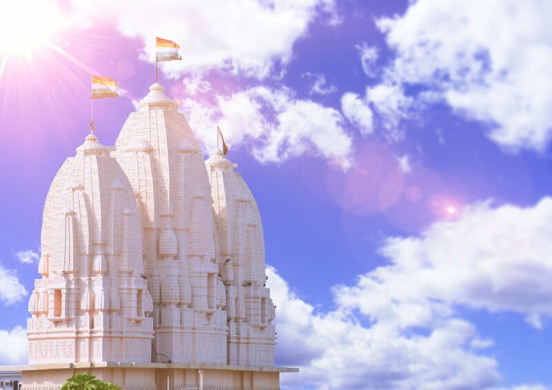Hình ảnh lá cờ Ấn Độ được giương cao trên một tòa nhà màu trắng giữa bầu trời đầy nắng