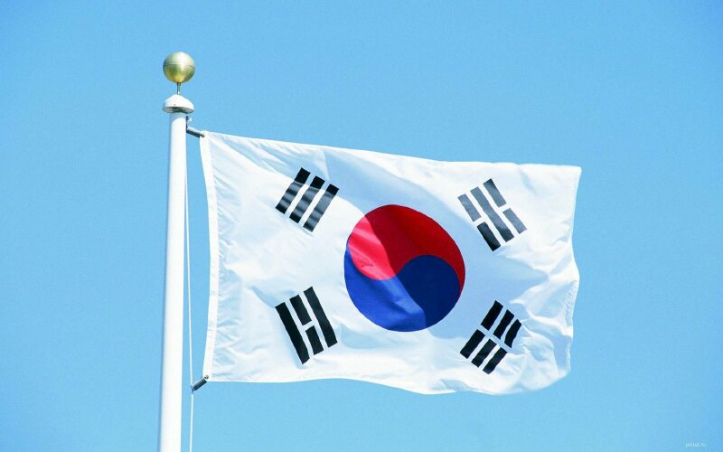 Hình ảnh lá cờ Hàn Quốc được giương trên cột cờ tung bay giữa trời