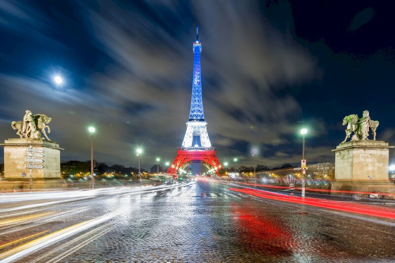 Hình ảnh tháp Effiel với 3 màu biểu tượng của lá cờ nước Pháp đỏ, trắng, xanh da trời