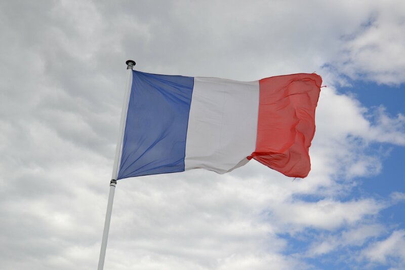 Hình ảnh lá cờ Pháp bay giữa bầu trời
