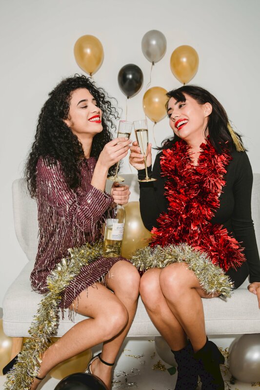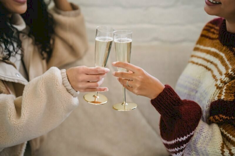 Hình ảnh 2 cô gái đang cầm ly rựu vang mừng tiệc
