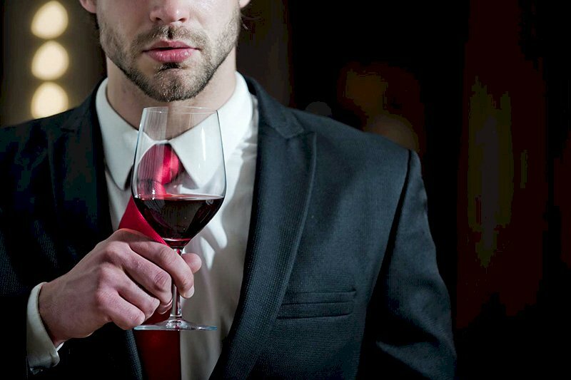 Hình ảnh doanh nhân cầm ly rượu vang lịch lãm sang trọng và đầy quyến rũ với chiếc caravat màu đỏ