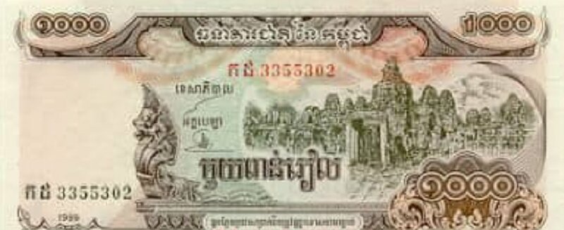 Hình ảnh tiền xưa mệnh giá 1000 Riles Campuchia