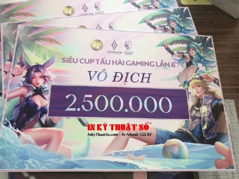 Lưu ý nhỏ cho khách hàng ở tỉnh: quý khách vui lòng gửi yêu cầu đặt in bảng trao giải từ sớm, trừ thời gian in và gia công là 1 ngày, dự trù cho việc chỉnh file thiết kế in là nửa ngày, và đặc biệt là thời gian vận chuyển là 2 - 3 ngày (tùy địa điểm xa hay gần), do đó, đặt in trước 5 - 7 ngày trước khi sự kiện diễn ra là lời khuyên của In Kỹ Thuật Số gửi đến quý khách hàng!