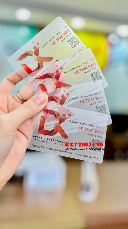 Khi muốn giới thiệu thương hiệu của bạn một cách trực tiếp nhất, việc sở hữu một chiếc danh thiếp độc đáo, không đụng hàng sẽ thực sự hữu ích cho công việc của bạn. Danh thiếp có thể nói lên thương hiệu của bạn và việc thực hiện một danh thiếp từ PVC trong suốt/trong mờ giúp bạn nhận được ấn tượng tốt hơn từ khách hàng tiềm năng của bạn.