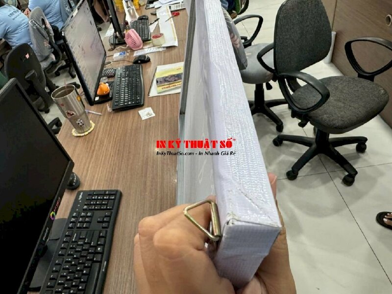 - Gia công: cuốn biên, đóng khoen trên từng tấm banner trước khi giao hàng