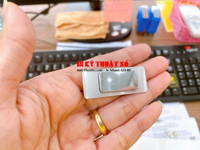 In huy hiệu inox vàng phun cát, in UV trên inox màu - In Kỹ Thuật Số Since 2006