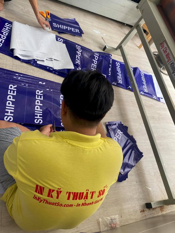 Shipper cũng cần đeo băng tay nền xanh đậm, kích thước ống đeo 20 cm, in chữ "Shipper" màu trắng.