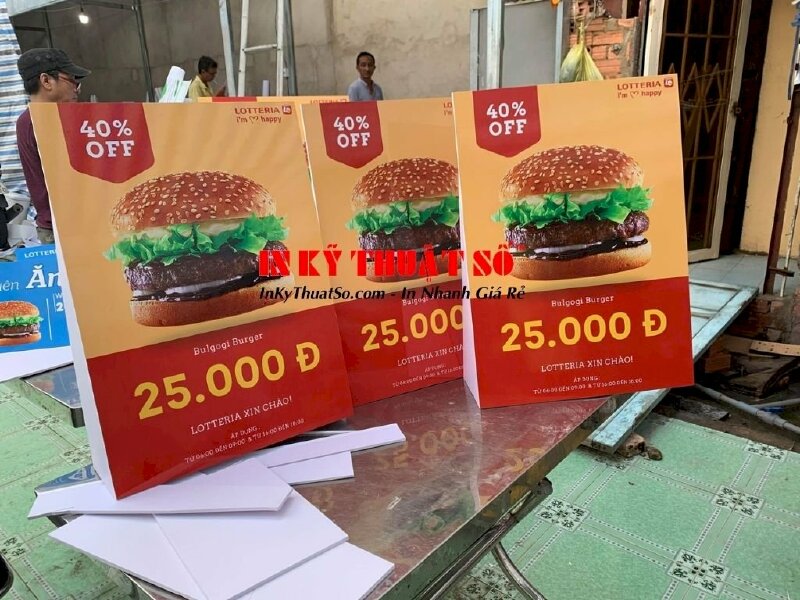 - Standee mini bằng giấy đặt trên bàn (dạng chân chữ A): mục đích giới thiệu thương hiệu, sản phẩm; in dưới dạng menu để bàn giới thiệu thực đơn mới, món ăn, thức uống mới,…