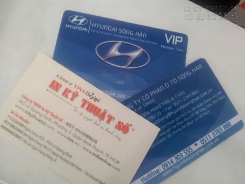 Các sản phẩm in thẻ nhựa do In Kỹ Thuật Số gia công và thiết kế đạt chuẩn về độ bền, màu sắc với công nghệ in offset, in laser, in phun và in nhiệt - Thẻ nhựa VIP member card thiết kế sắc nét, nổi bật thương hiệu Hyundai Sông Hàn tại công ty của chúng tôi.