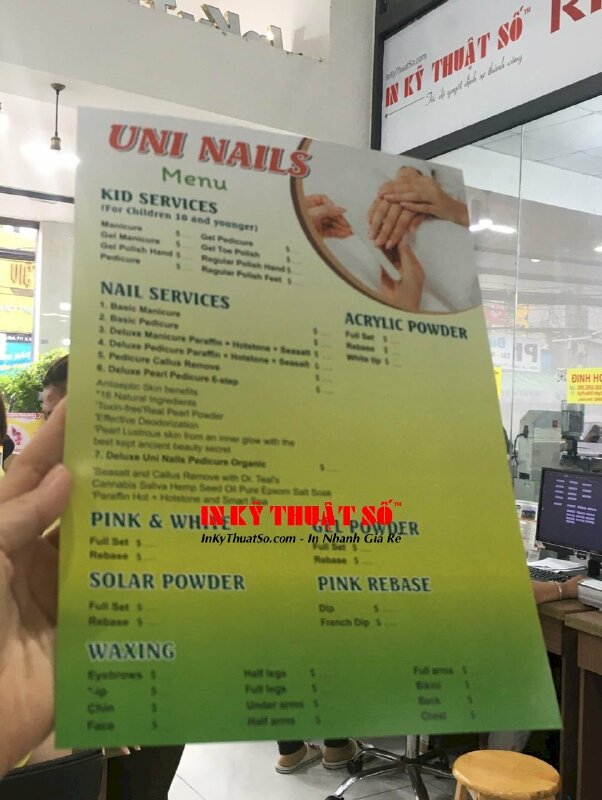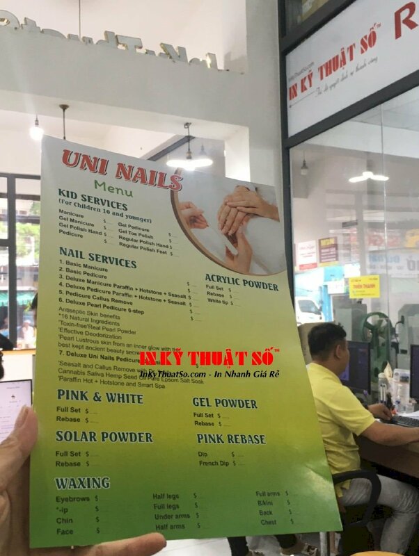 Mẫu tờ rơi nail spa cùng thông tin spa và chi tiết các mục chăm sóc nail tại spa rất chi tiết