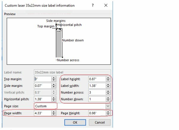 Trong Page setup > chọn Page Layout > Size > More Paper Sizes > Page setup > Chọn nhãn Paper > Điều chỉnh Width, Height để điều chỉnh chữ vào trong khuôn khổ của tem > Click OK.